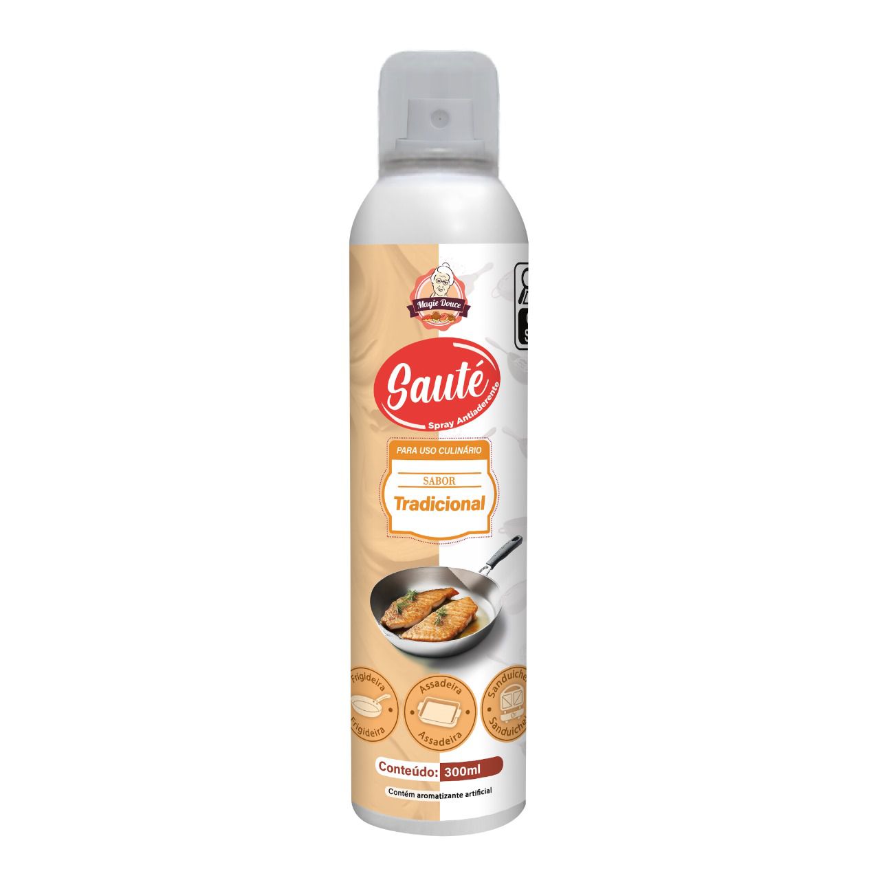 SAUTÉ é um spray antiaderente de aplicação alimentícia e uma opção prática e saborosa para assar, fritar e grelhar alimentos. Sua formulação cria uma película que não deixa o seu alimento grudar. Pode ser usado na frigideira, assadeira, air fryer, omeleteira, crepeira, churrasqueira elétrica e muito mais. Sua aplicação é prática, fácil e econômica, além de contar com diversas opções de sabores.