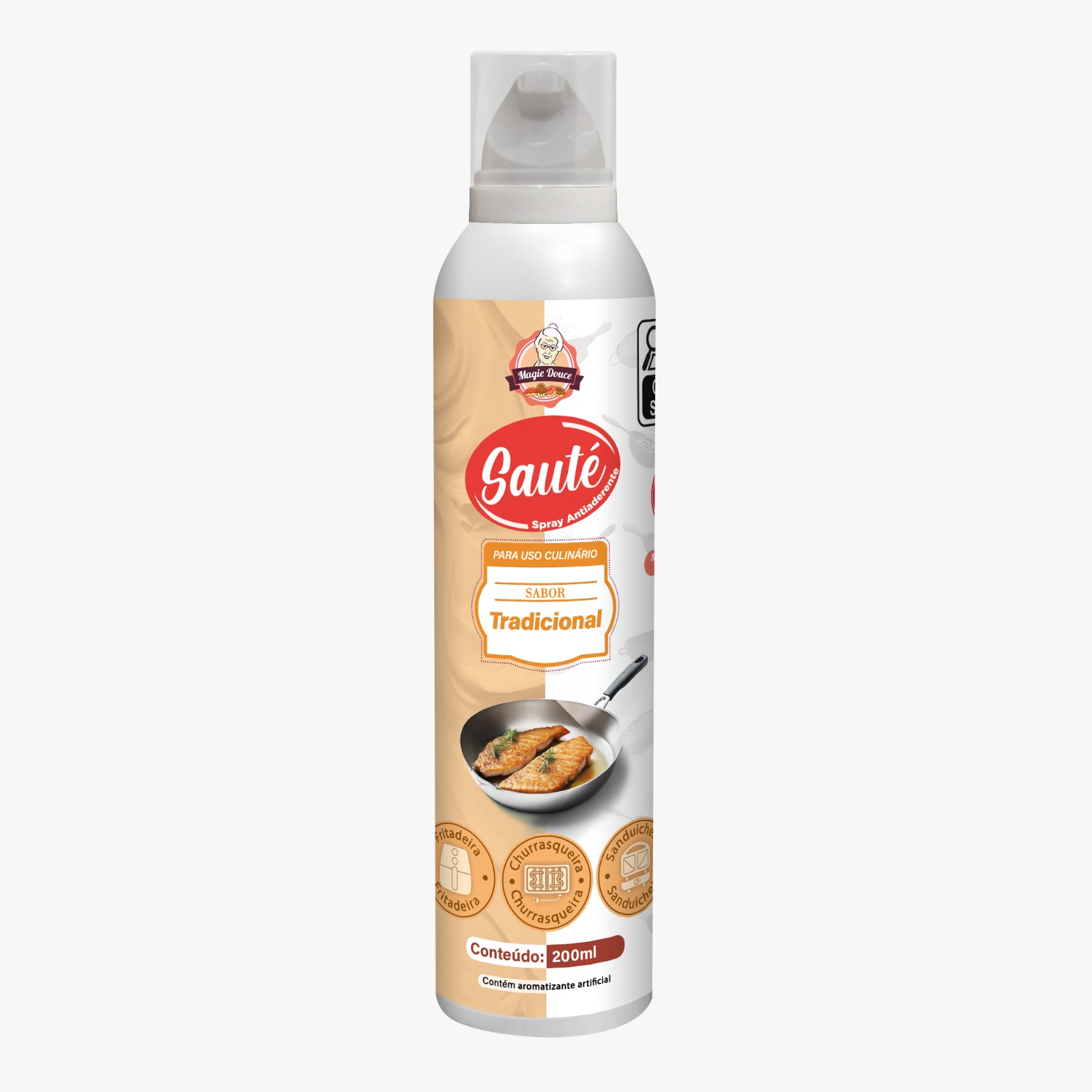 SAUTÉ é um spray antiaderente de aplicação alimentícia e uma opção prática e saborosa para assar, fritar e grelhar alimentos. Sua formulação cria uma película que não deixa o seu alimento grudar. Pode ser usado na frigideira, assadeira, air fryer, omeleteira, crepeira, churrasqueira elétrica e muito mais. Sua aplicação é prática, fácil e econômica, além de contar com diversos sabores.